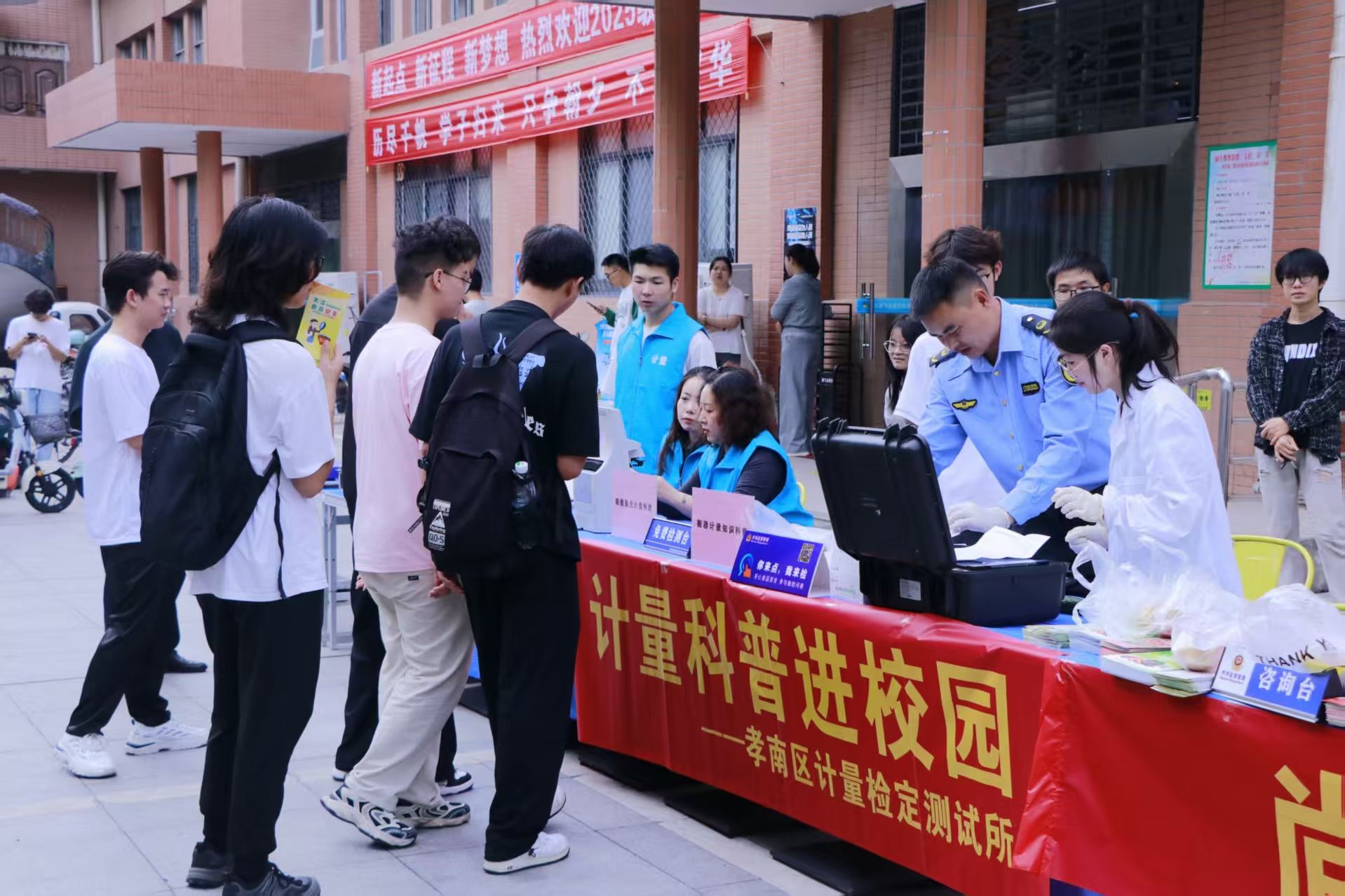活动伊始,食品安全与计量知识展板沿广场依次排开,吸引大批师生驻足。咨询台前,区市场监管局工作人员一边发放《中华人民共和国食品安全法》《中华人民共和国反食品浪费法》折页,一边解答“如何选择放心外卖”“三无食品危害”等热点问题;计量所技术人员则手把手教学“手机变砝码”技巧,现场演示如何识破“鬼秤”,并免费提供眼镜验光计量检测服务,短短两小时服务师生200余人次。
